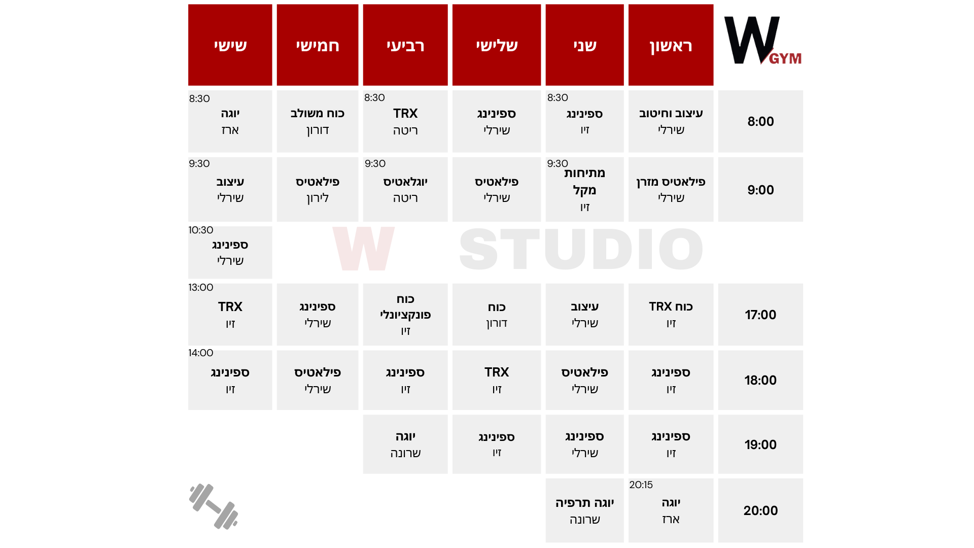 למערכת שעות השבועית של הסטודיו לחצו כאן